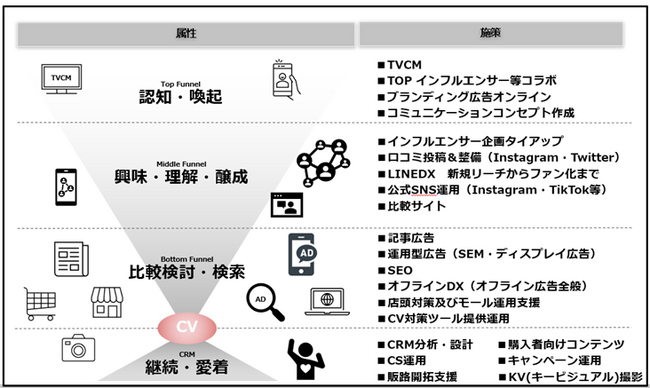 当社では、あらゆる業界をターゲットにブランディングから新規顧客の獲得の効率化、LTVの向上までを一気通貫で支援するサービスを行っております。不透明だった広告・マーケティングの効果の明確化、最適化を図り、ブランド及びサービスのグロース支援を行っていくことで、市場の活性化へと繋げてまいります。