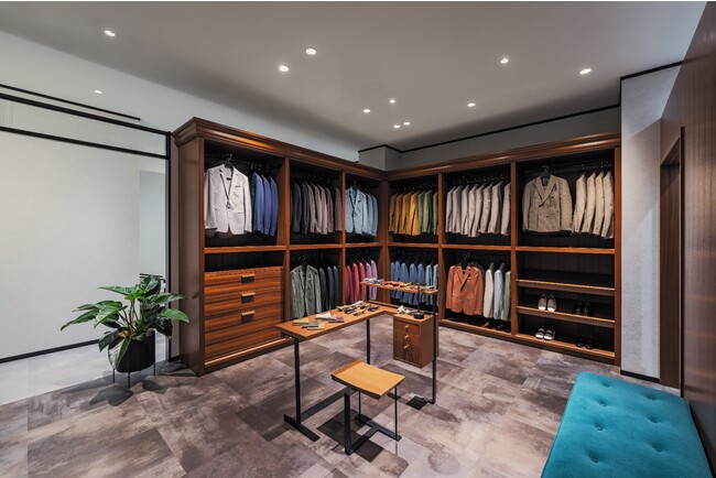新設されたメンズブースは、豊富なカラーとデザインのバリエーションを誇るDRESSMOREのタキシードラインナップが並べられる広さを確保。新婦と同じく主役である新郎にも特別な空間で衣装選びをし、結婚式の準備に楽しく積極的に参加してもらいたいという思いを込めました。