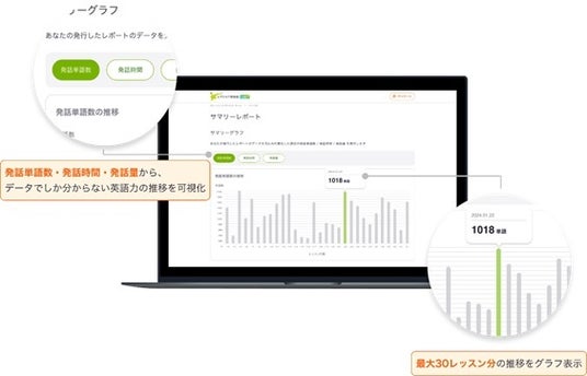 発話内容を数値化し、レッスンごとの英語力の推移を可視化