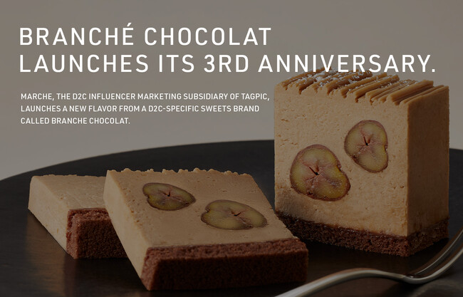 日本及び東南アジア圏に、約6,000名を超える国内最大級のインフルエンサー・ネットワークを束ねるSNSマーケティング会社のタグピク株式会社(東京都港区、以下「タグピク」)の子会社マルシェ株式会社(東京都港区、以下「マルシェ」)は薬師神陸シェフを起用したスイーツブランド『BRANCHE CHOCOLAT(ブランシェ・ショコラ)』を展開しております。この度、3周年を迎えた『BRANCHE CHOCOLAT(ブランシェ・ショコラ)』より「和栗のカレ・オ・ショコラ」の予約販売を開始致します。