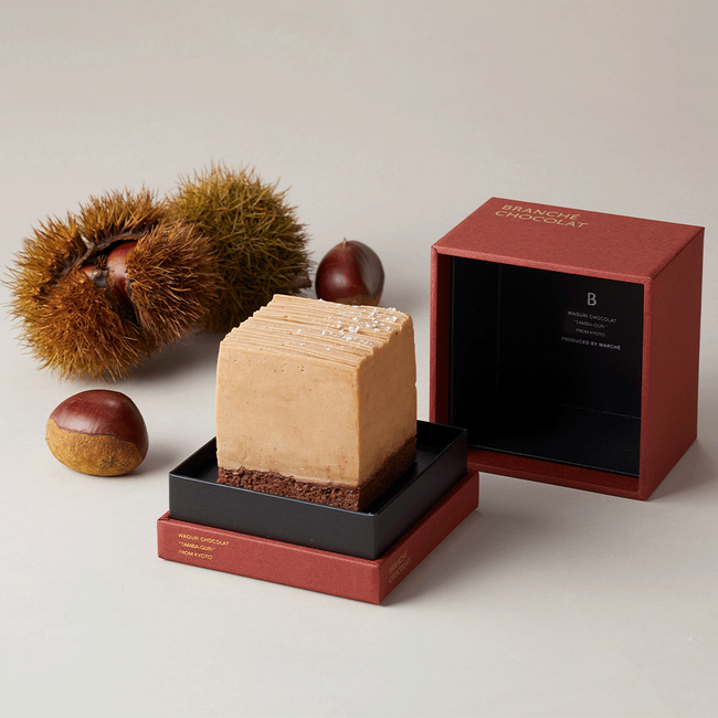 口に運べば、まず芳醇なショコラが広がり、続いて栗の風味を満喫すると、優雅な余韻へと導いてくれます。ショコラと栗が織り成す多彩な表情は、洋菓子のようにも、和菓子のようにも。