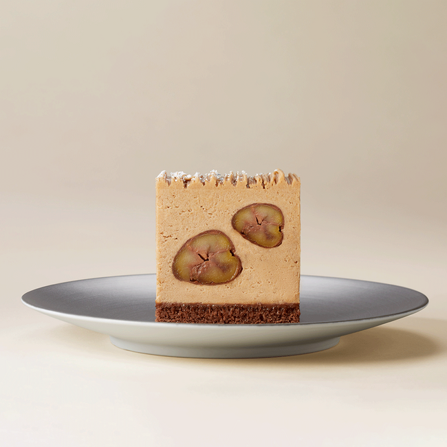 フランスの古典菓子であるパン・ド・ジェンヌを土台に、栗の餡とガナッシュ、カスタードをあわせたクリームで優美に形成し、栗を中心部に忍ばせました。