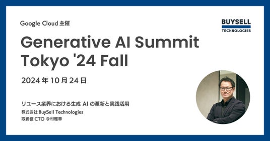 総合リユースサービス「バイセル」を展開する株式会社BuySell Technologies(本社:東京都新宿、代表取締役社長兼CEO:徳重 浩介)は、2024年10月24日に開催されるGoogle Cloud 主催のイベント「Generative AI Summit Tokyo '24 Fall」に取締役CTO 今村雅幸が登壇することをお知らせします。