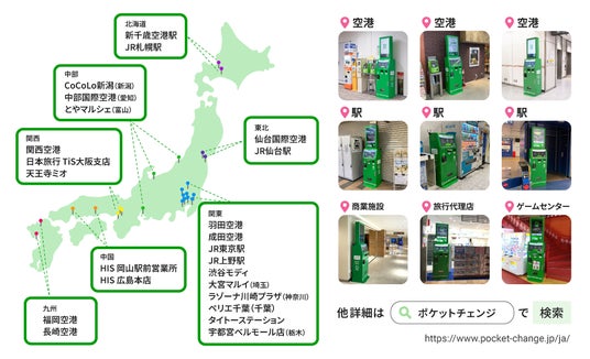株式会社ポケットチェンジは、引き続き、すべての海外旅行者の皆様が、より便利・快適にご利用いただけるよう、設置場所・サービスの拡充に努めてまいります。
