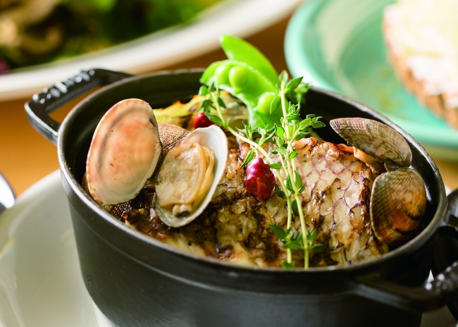 【メニュー】もみじ豚のミルフィーユ鍋/真鯛のアクアパッツァ 瀬戸内レモン仕立て/タコ飯など
