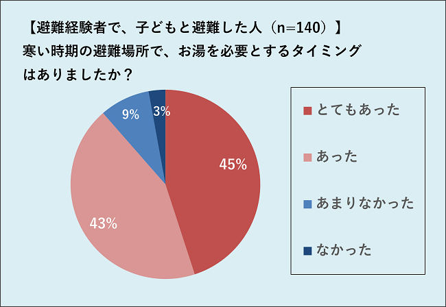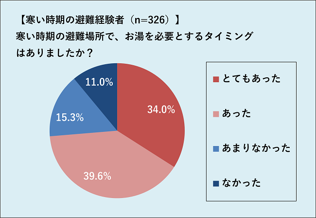 避難経験者の74%が「避難場所でお湯が必要だった」と回答