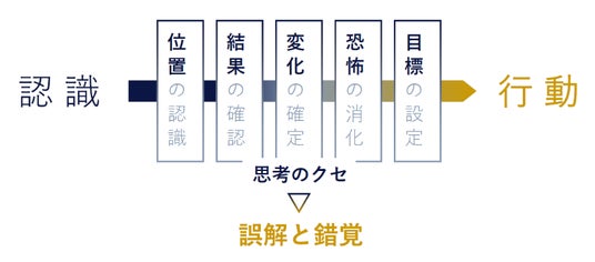 識学とは、意識構造に基づくマネジメントモデルです。ヒトは、物事を正しく認識することができれば正しく行動できますが、認識を間違えてしまえば選択すべき行動を誤ってしまいます。これは、意識構造に思考のクセが存在し、それが誤解と錯覚につながるためです。識学では、この誤解や錯覚がなぜ発生するのか、どのような環境や対人言動がその要因となり得るのかを体系化しています。ヒトの集合体である企業組織では誤解と錯覚が複雑化してしまうため、それらの発生を最小化することが生産性向上を実現するための本来の方法となります。