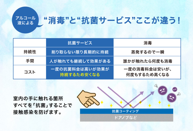 “抗菌サービス”とアルコール液による“消毒”の違い