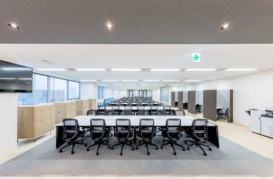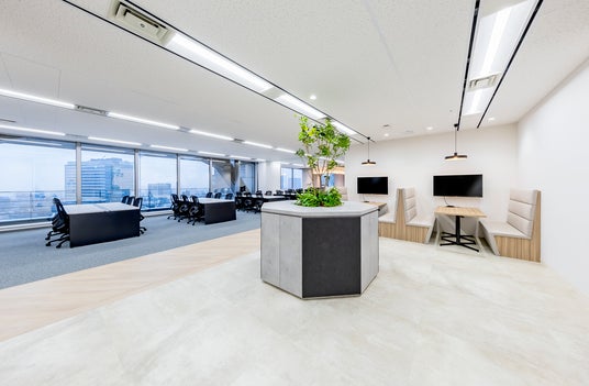 執務エリアの中には、景観を眺めながら一人で集中したり、隣の人とコミュニケーションをとりながら業務をしたりするなど多様な執務スタイルに対応できる空間を備えています。