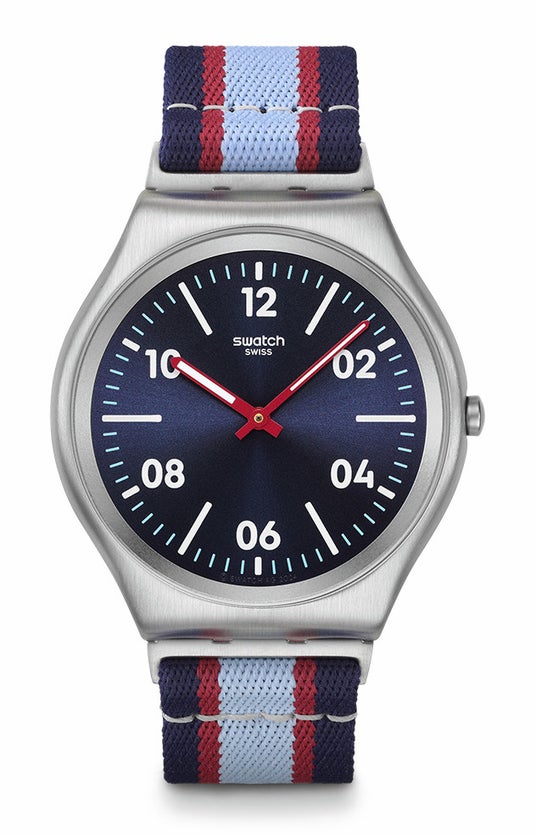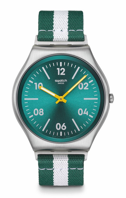 今回のラインアップは全11モデル。SKIN IRONY、BIG BOLD IRONY、NEW IRONY CHRONO、さらにSISTEM51ムーブメントを搭載した自動巻きモデルまで、多様なニーズに応えるバリエーションを展開します。それぞれのモデルには、光で輝くサンブラッシュ仕上げのダイアルや、暗闇でも時刻を確認できる蓄光ディテール、肌なじみのよいテキスタイルストラップなど、Swatchならではの遊び心と機能性が詰め込まれています。