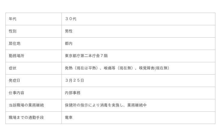 東京都建設局に所属する職員1名が新型コロナウイルスに感染したことが