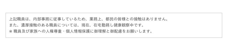 上記職員は、発症前14日以内における海外渡航・滞在歴は確認されておりません。