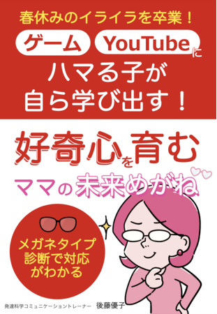株式会社パステルコミュニケーション(本社:東京都豊嶋区、代表取締役吉野加容子)代表の吉野加容子が開発した、親子のコミュニケーションをスムーズにして子どもの発達を加速させる「発達科学コミュニケーション」講師・後藤優子よる、『春休みのイライラを卒業!ゲームYouTubeにハマる子が自ら学びだす!好奇心を育むママの未来めがね~めがねタイプ診断で対応がわかる~』小冊子の無料配布を開始しました。