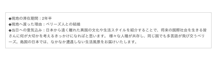 海外でボランティア活動をしながら仕事をする当社コートジボワール在住メンバーと、ベリーズ在住のメンバーが、現地の子どもたちと熊本県のルーテル学院高等学校の生徒たちをオンラインで繋ぎます。高校生たちが現地の様子をリアルタイムで感じることで、高い興味関心を持って主体的・対話的で深い学びの視点からの効果的な授業を提供していくことを目指します。