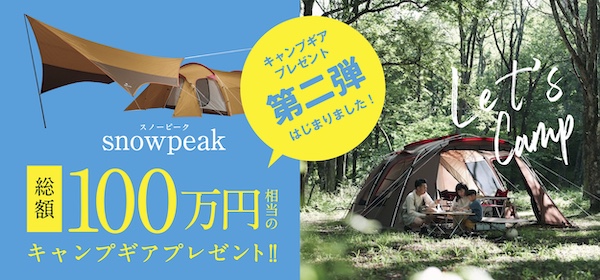 そしてこの度、ご好評につき『総額100万分のスノーピークキャンプギアプレゼントキャンペーン 第2弾』を実施いたします。