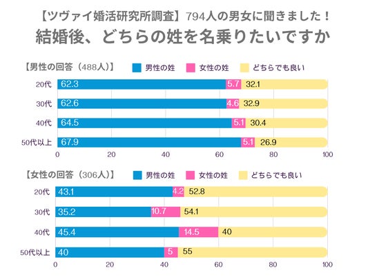 6割以上の男性は「自分の姓を継ぎたい」、一方で柔軟な考え方も増加