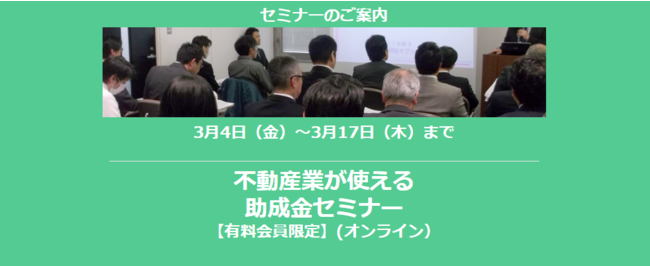 そこで今回「不動産業が使える助成金セミナー」を3月17日(木)まで配信します。