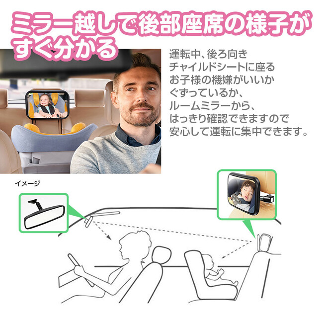 後部座席の様子を振り向かずに確認することができ安心して運転に集中できます。