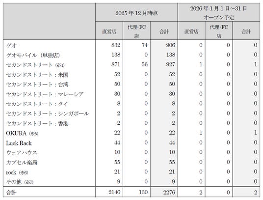 (※4)スーパーセカンドストリート・セカスト各専門店・ジャンブルストア・Doki-Doki、Oki-Doki含む
