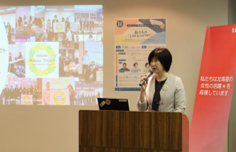 北海道で働く女性全員が“等身大の女性活躍”を目指す、サッポロビールはじめ道内企業6社の現役女性会社員による女性活躍推進プロジェクト「北海道Mimosaプロジェクト」からは女性の健康・介護・キャリア・アンコンシャスバイアス・ダイバーシティコミュニケーションなどをテーマに開催したセミナー&交流会の事例を紹介。登壇したサッポロビール北海道本部の山田彩子さんは、『まずは社外の方と交流するその楽しさや新たな視点を獲得することを実感していただけるように注力しています。』と、過去の取り組み事例について紹介されました。