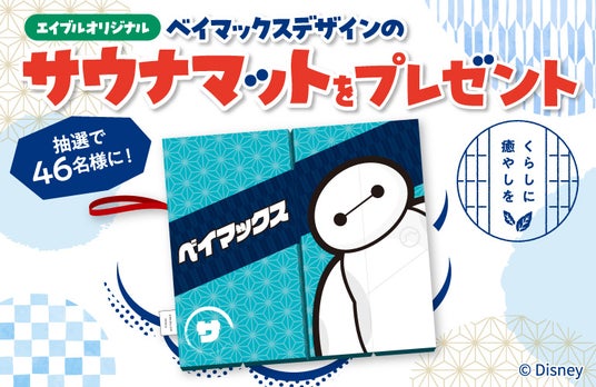 株式会社エイブル(本社:東京都港区、以下エイブル)は、2025年6月23日(月)より、エイブル公式Xアカウントをフォローの上、対象のキャンペーン投稿をリポストして下さった方の中から、抽選で“ベイマックス”のボディの色であるシロ(46)にちなんで、合計46名様にエイブルオリジナル『ベイマックス』デザインのサウナマットがその場で当たるSNSキャンペーンを実施いたします。
