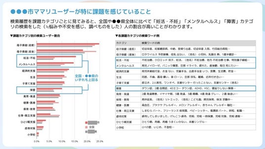 そこで、ママリに集まる生の声をより自治体のみなさんに利活用していただくため、自治体ごとの住民の声を集約・分析し、その課題やニーズをとりまとめた子育て支援レポートの提供を昨年12月から開始し、三重県伊賀市や福岡県大刀洗町、岐阜県垂井町(提供決定順、敬称略)など全国30自治体への提供が決定いたしました。