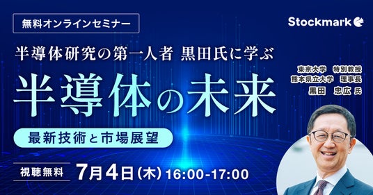 最先端の自然言語処理AIを活用した情報収集サービス『Anews・Astrategy』を提供するストックマーク株式会社(以下、「当社」)はオンラインセミナー『半導体研究の第一人者 黒田氏に学ぶ 半導体の未来 ~最新技術と市場展望~』を7月4日(木) に開催致します。▼オンラインセミナーの詳細と視聴登録はこちら▼