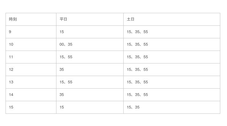 出航時間:9:30、10:00、10:50、11:20、12:40、13:10、14:00、14:30