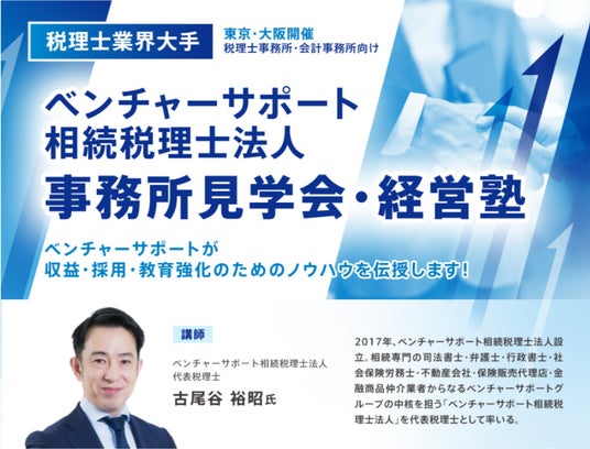 本イベントでは、税理士業界大手のベンチャーサポートが、人材育成や採用力、収益力を強化するためのノウハウを実際の取り組みを交えて解説。また、ご参加者様の事務所の規模や悩みに合わせて、収益力アップの方法をご提案します!