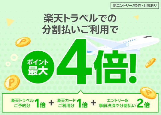 ※「楽天トラベルで分割払いのご利用でポイント最大4倍!」キャンペーン