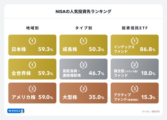- 人気の投資先ランキングは? 地域別1位日本株・全世界株、タイプ別1位成長株、投資信託ETFのタイプ1位インデックスファンド(投資信託)