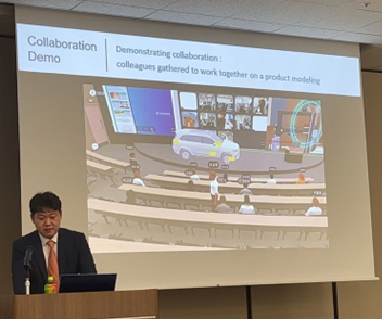本セミナーのために韓国から来日したyellotail社のCPO June H. Hong氏は、「Metaverse Industry Use Cases」について講演をされました。yellotail社は、MXSpaceというメタバースのプラットフォームにより、60~70のメタバースプラットフォームを構築してきた実績があります。