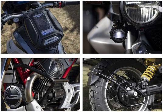 - 主要装備 : DRL 付きフル LED ヘッドライト、LED ウィンカー、コーナリング ABS トラクションコントロール、クルーズコントロール、5 ライディングマップ フルカラーTFT メーター、USB ソケット、手動調整式ツーリングスクリーン エアーディフレクター、アルミ製アンダーガード、ハンドガード、 MOTO GUZZI MIA マルチメディアプラットフォーム、アーバンサイドケース グリップヒーター、シートヒーター