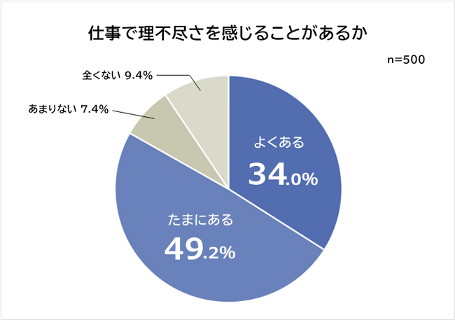 そこで今回、株式会社ビズヒッツ( https://bizhits.co.jp/ )が運営するビジネス上の問題解決を考えるメディアBiz Hits( https://bizhits.co.jp/media/ )は、現在お仕事をしている男女500人に「仕事で理不尽と感じる瞬間」についてアンケート調査を実施。