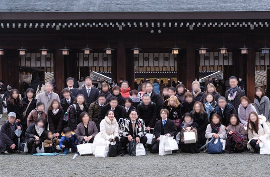 橿原神宮本殿前にて参加者集合写真(最前列中央・土岐総一郎氏)