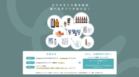 株式会社ツクルバ(本社:東京都渋谷区、代表取締役CEO 村上 浩輝、以下「ツクルバ」)が提供する中古・リノベーション住宅の流通プラットフォーム「カウカモ」は、Instagram公式アカウント( https://www.instagram.com/cowcamo )のフォロワーが2025年8月に10万人を突破しました。フォロワーの皆さまへ感謝の気持ちを込めて、「カウカモ」サービス開始10周年記念プロジェクト「cowcamo 10th Anniversary Year」(※1)も踏まえた、特別ギフトキャンペーンを実施します。