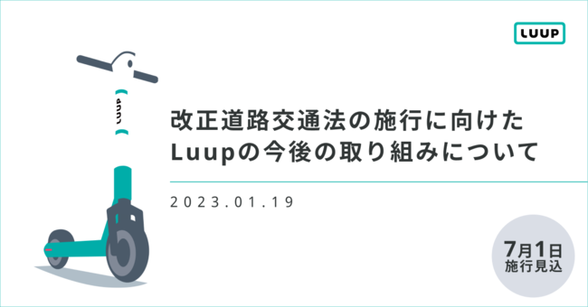 2022年4月19日(火)に国会で成立した電動キックボードをはじめとする電動小型モビリティの車両区分を新しく定める改正道路交通法について、施行日が2023年7月1日(土)となる方針が明らかにされました。株式会社Luup(本社:東京都千代田区、代表取締役社長兼CEO:岡井大輝、以下「Luup」)は、新しい交通ルールの適用に向けて車両やアプリの改善を進めると共に、街の皆さま、ユーザーの皆さまに向けた新ルールの啓発に、より一層注力してまいります。