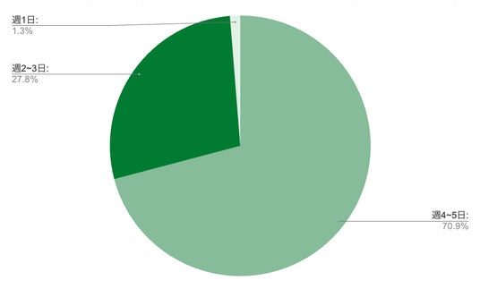週4~5日の案件が70.9%、週2~3日が27.8%、週1日が1.3%という結果になっています。