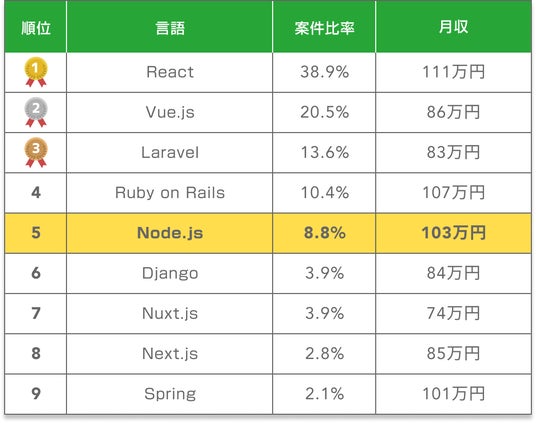 【2025年】Node.js案件の平均年収、案件数|フリーランス副業調査