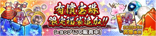 当月に開催されるガチャ「【願い焦がれしあの唄を】&【調伏戦】特効! 英傑 縁結び」で使用できる「【御朱印付き】9月・英傑結糸(10回)」を1個と、キャラクターの強化に必要なアイテムがまとめて手に入るお得なセットです。