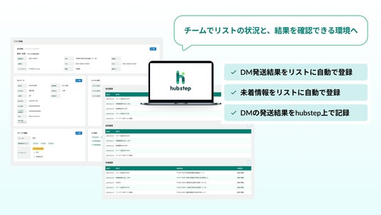 ディーエムソリューションズ株式会社(本社:東京都武蔵野市、代表取締役:花矢 卓司)は、宛先データの整備・登録・発送履歴の管理を自動化するクラウドサービス「hubstep(ハブステップ)」を正式リリースしました。