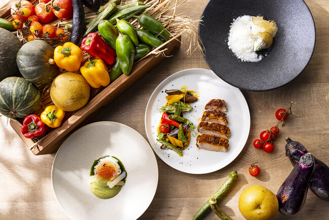 傷などで、店頭で売られない食材も積極的に農家から仕入れ、美味しく見た目にも美しい1皿に仕上げます。調理が難しい食材や、傷がついていたり、形が不ぞろいな食材も、シェフの技法と創意工夫で魅力的な料理へと変え、プロならではの味わいを提供します。世界中を旅してきたエグゼクティブシェフ福田の、様々な技法を冒険的に取り入れ、食材の魅力を引き出すアプローチをお楽しみください。
