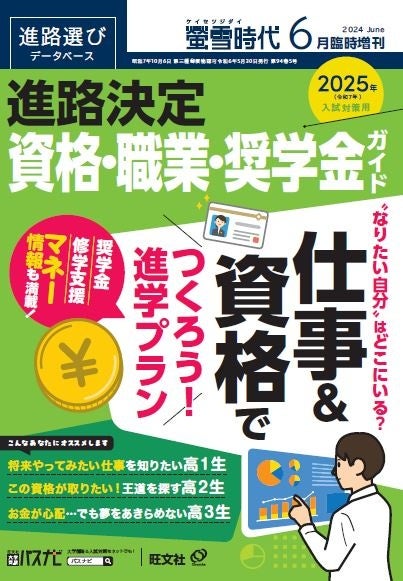 また2024年5月30日(木)には、将来なりたい職業に必要な資格と、それを学ぶ進学先選びをサポートする 『螢雪時代6月臨時増刊 進路決定 資格・職業・奨学金ガイド』 を刊行いたします。