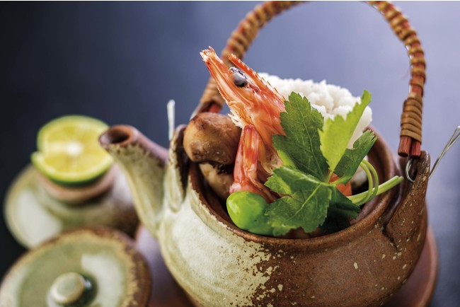 こだわりの出汁を使った料理には、「松茸の土瓶蒸し」と「伊勢海老の黄味煮」をご用意。お猪口に出汁を注いだ瞬間から、鰹の一番出汁と松茸の芳醇な香りが広がり、日本伝統の食の豊かさを感じていただけます。