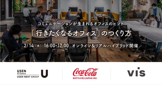 ワークデザインを手がける株式会社ヴィス(本社:大阪市北区、代表取締役社長:金谷智浩、以下ヴィス)は、2024年2月14日、ハイブリッドセミナー「コミュニケーションが生まれるオフィスとは?:具体的な事例を交えたアイデア・仕掛けづくりをお伝えします!」をコカ・コーラ ボトラーズジャパン株式会社、株式会社USEN ICT Solutions(USEN-NEXT GROUP)と共催することをお知らせします。
