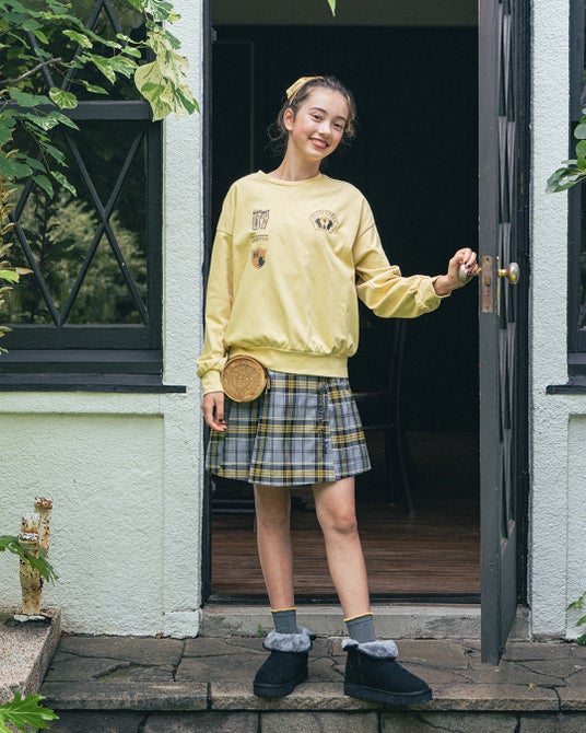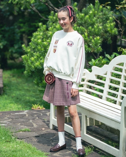 魔法界の人気スポーツ「クィディッチ」からインスパイアされたスポーティーなカレッジ調ウエアと、ホグワーツの4つの寮のエンブレムをモチーフにしたポーチやリボンチャームなど、魅力あふれる7アイテムを展開。