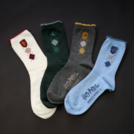 アーガイルクルーソックス各寮のエンブレムを刺繍したアーガイル柄のクルーソックス。ローファーと合わせたトラッドスタイルはもちろん、控えめなアーガイル柄はカジュアルにも合わせやすく、いろいろなシーンで活躍してくれます。