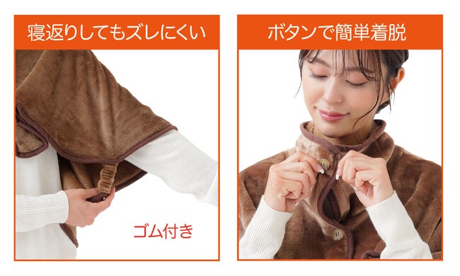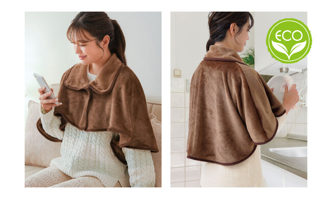 肩までしっかり覆って、冷えやすい肩や首元を包み込んでポカポカ。
