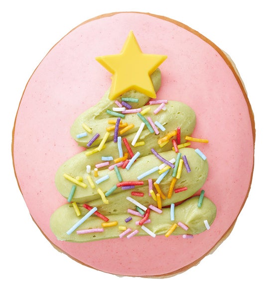 『ピスタチオ クリーム ツリー』は、甘酸っぱいストロベリーのチョコでコーティングした生地に、香ばしさを感じるピスタチオクリームでクリスマスツリーを描きました。カラフルに彩るレインボースプリンクルのトッピングに黄色い星を飾ったツリーが、ホリデーシーズンにきらめきを与えてくれます。