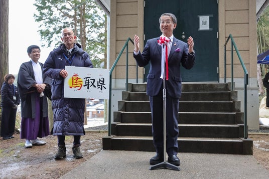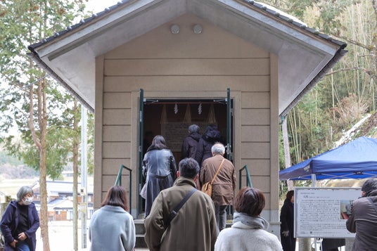 馬取県にお越しいただく午年関連企画の一つとして、この度、普段は一般公開されていない「石馬」を多くの方に御拝観いただけるよう、2月の午の日(2月1日、13日、25日)や土日祝日に「石馬」を特別公開することとし、公開日初日となる、2026年の初午の日にあたる2月1日(日)に、平井県知事や、伊木米子市長をはじめ、地元関係者、住民の方などが参集し、「馬取県」石馬特別公開記念式典を開催しました。
